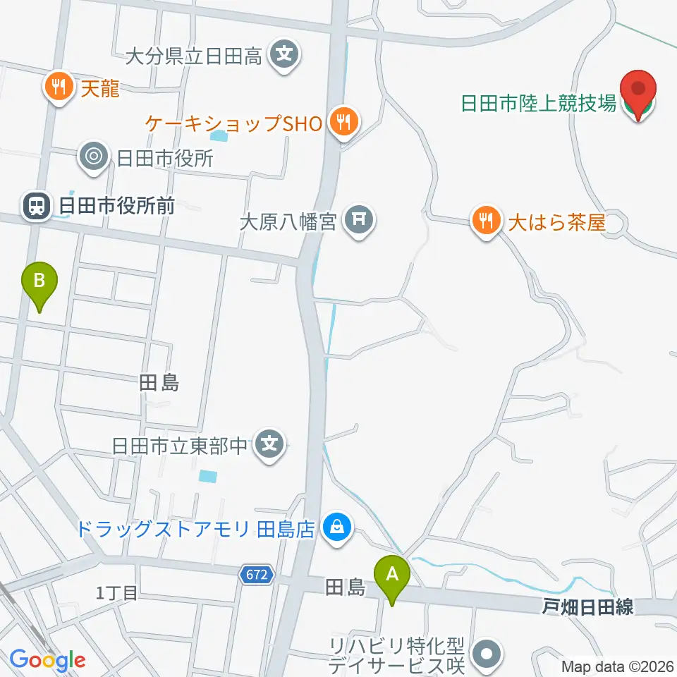 日田市陸上競技場周辺のコンビニエンスストア一覧地図