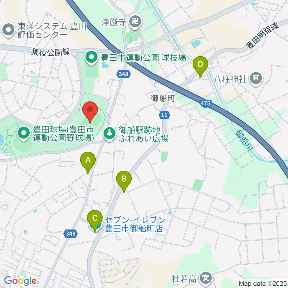 豊田市運動公園陸上競技場周辺のコンビニエンスストア一覧地図