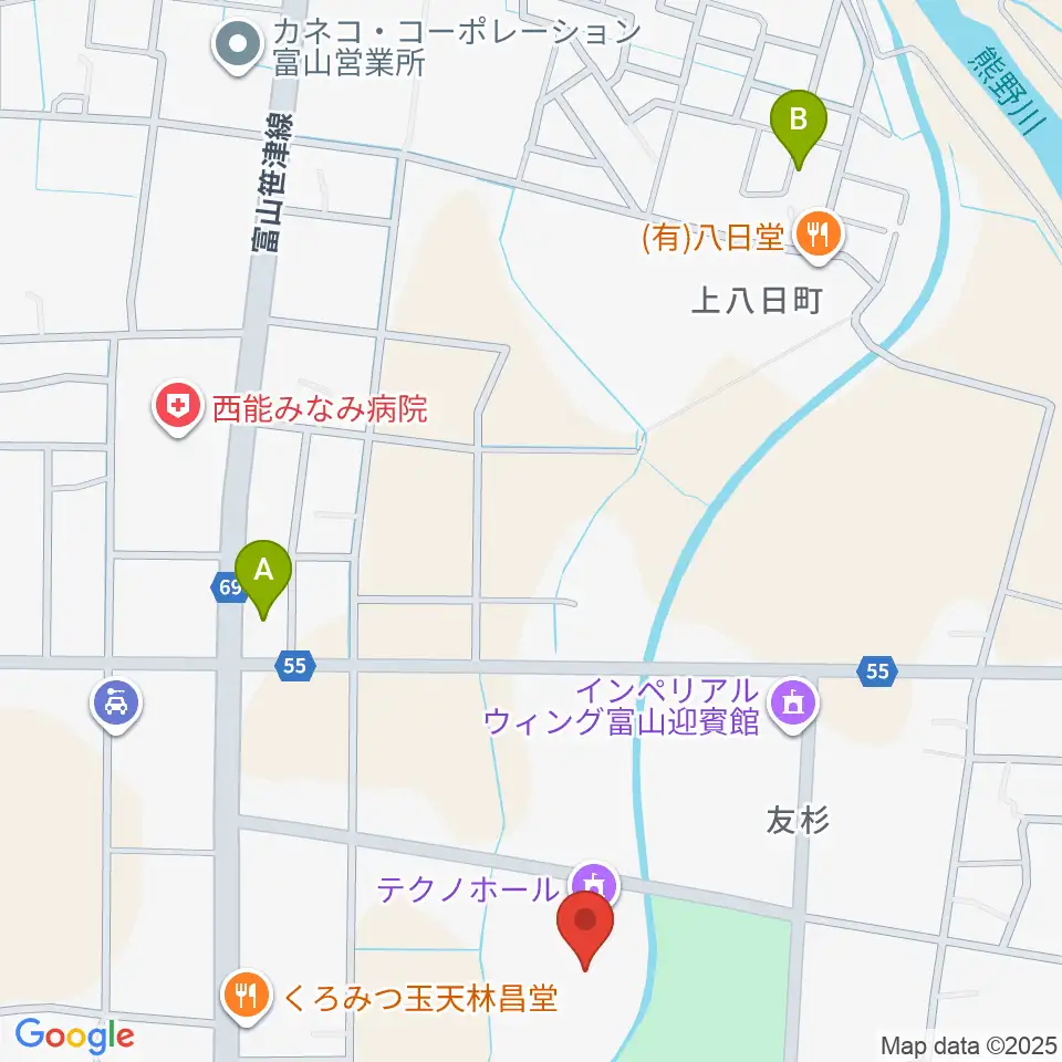 富山テクノホール周辺のコンビニエンスストア一覧地図