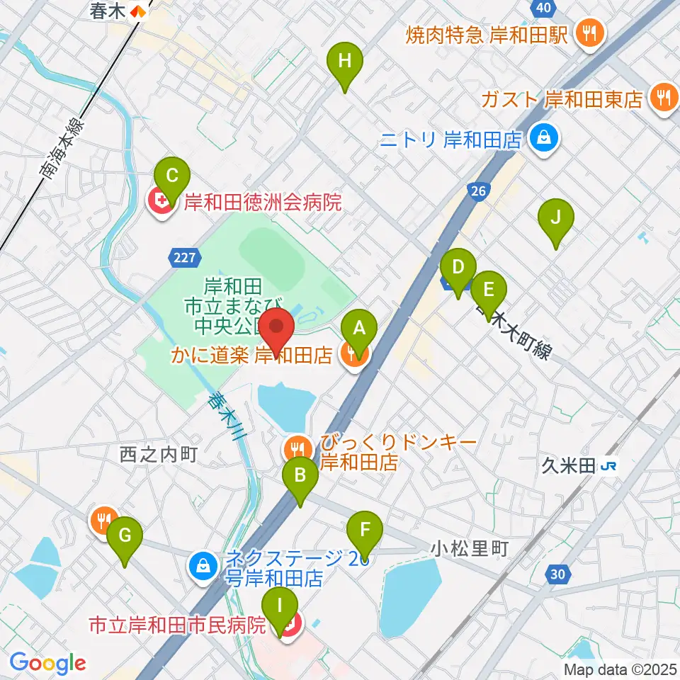 岸和田市総合体育館周辺のコンビニエンスストア一覧地図