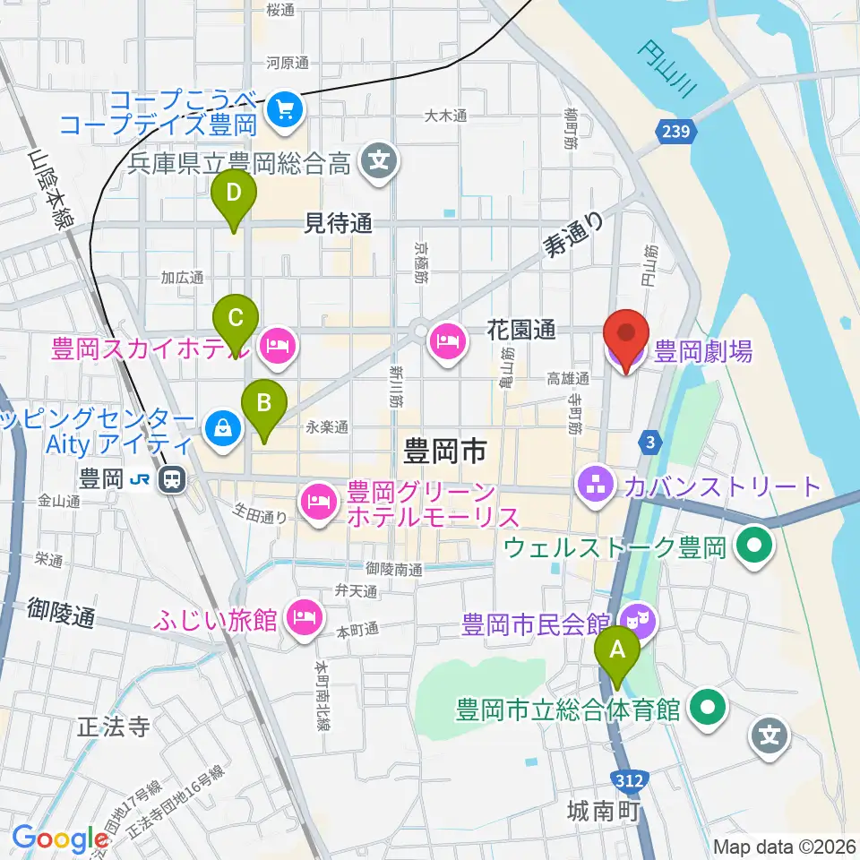 豊岡劇場周辺のコンビニエンスストア一覧地図