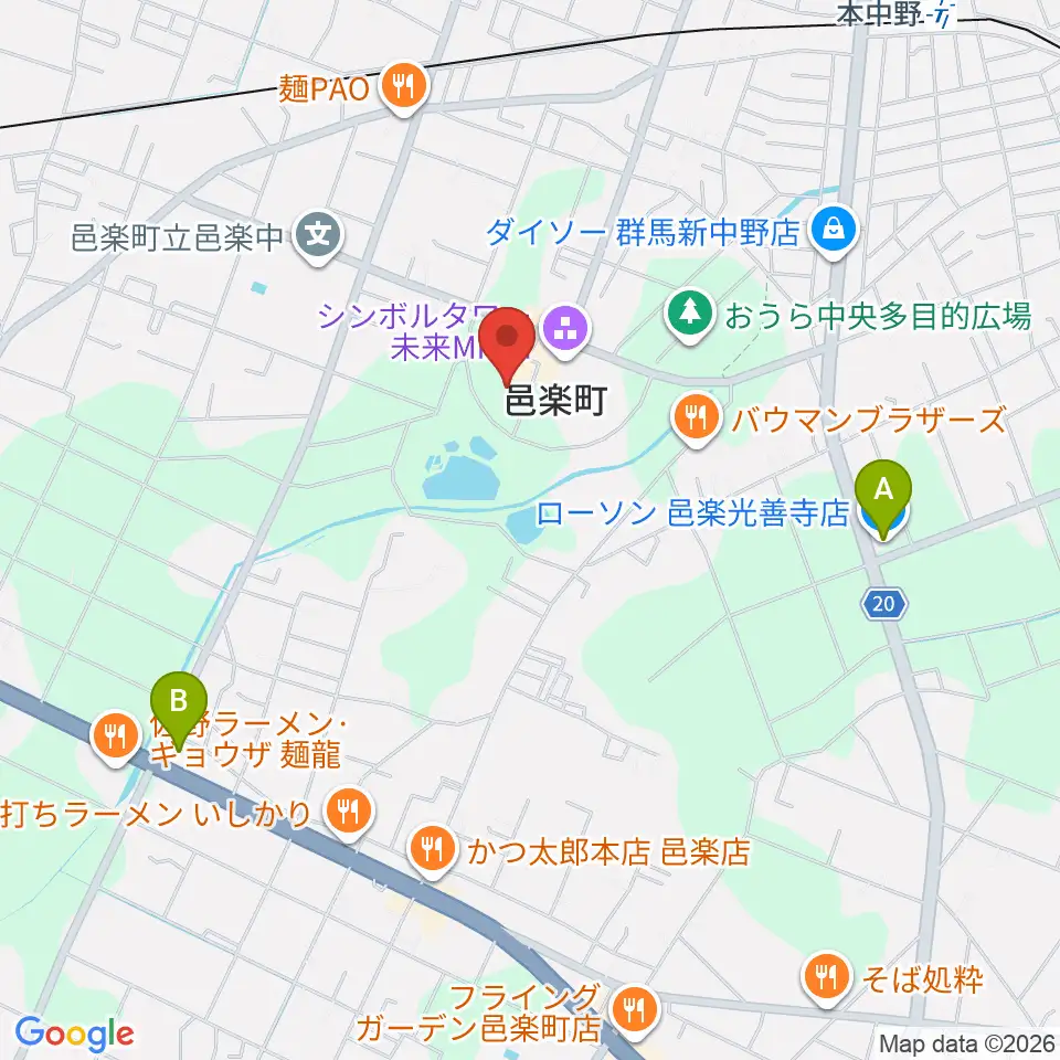 邑楽町中央公民館周辺のコンビニエンスストア一覧地図
