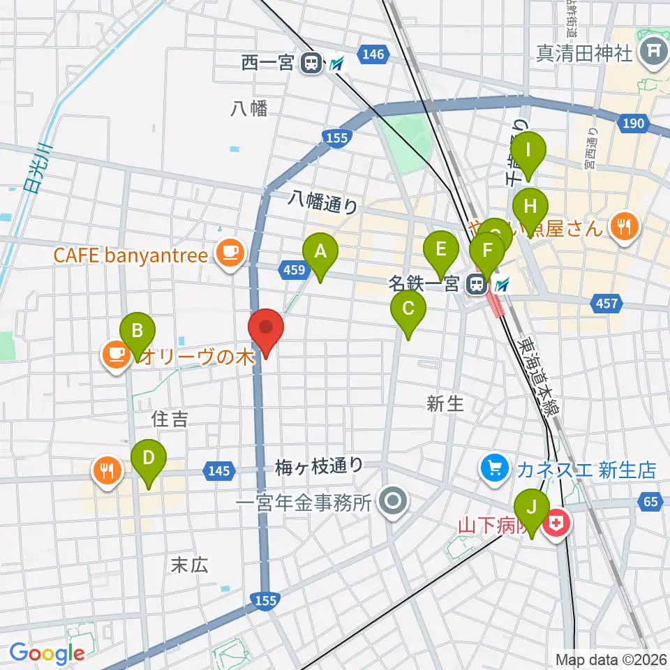 いちのみや中央プラザ体育館周辺のコンビニエンスストア一覧地図