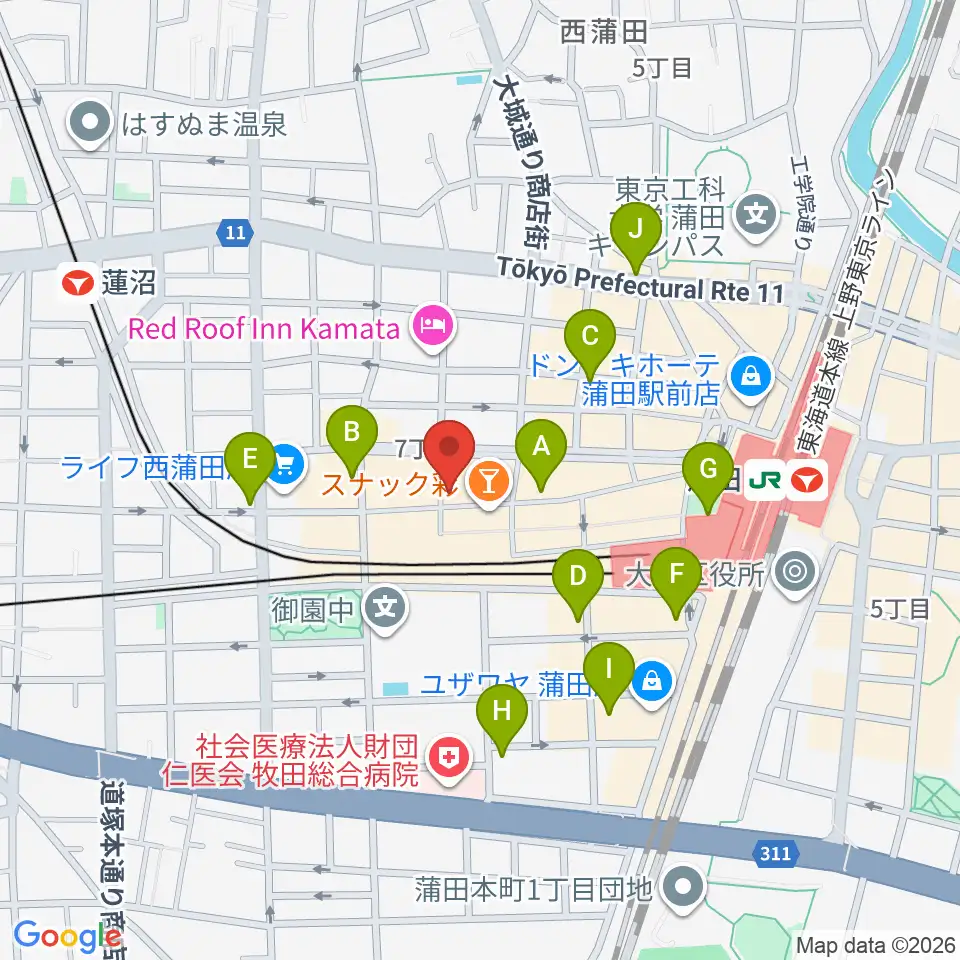 新堀ギター音楽院 蒲田教室周辺のコンビニエンスストア一覧地図