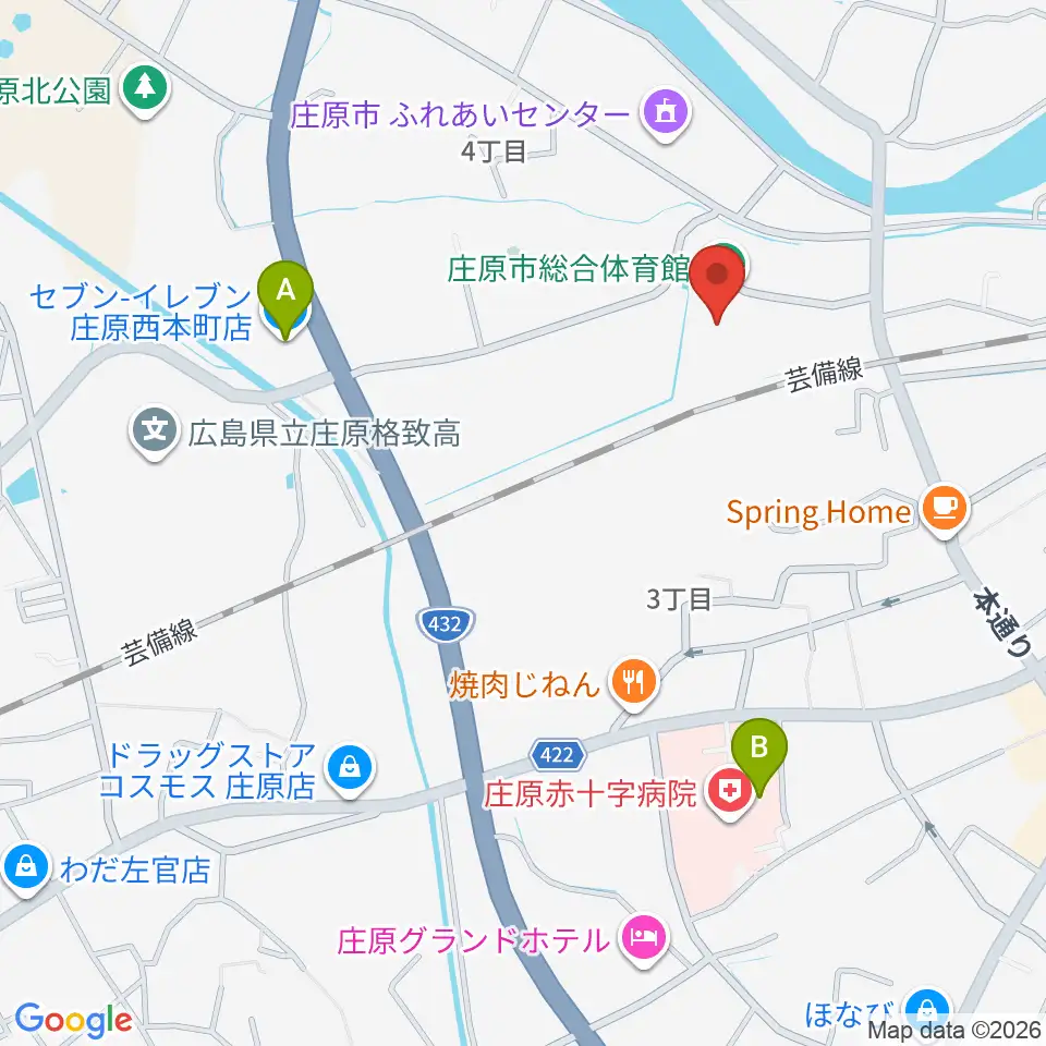 庄原市総合体育館周辺のコンビニエンスストア一覧地図