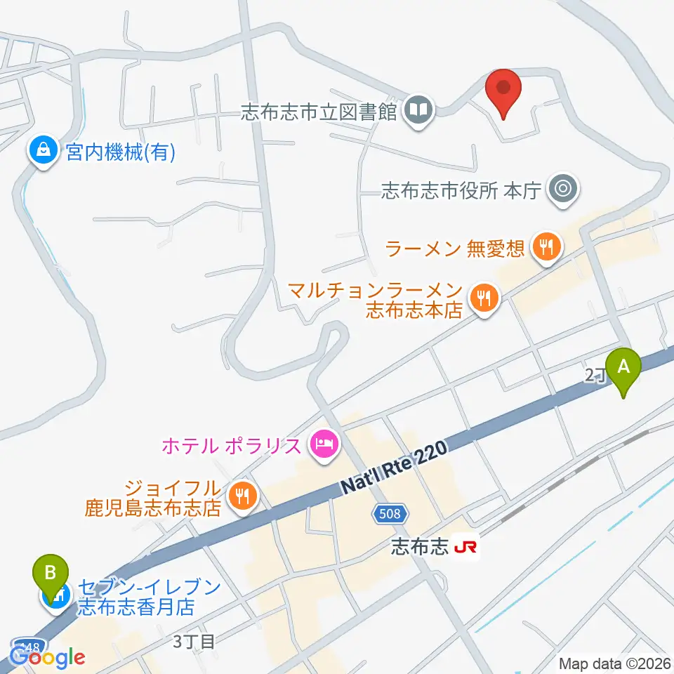 コミュニティセンター志布志市文化会館周辺のコンビニエンスストア一覧地図