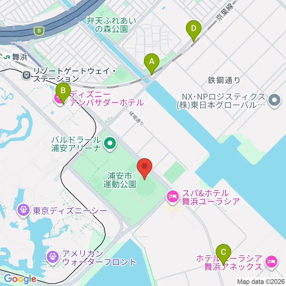浦安市運動公園野球場周辺のコンビニエンスストア一覧地図