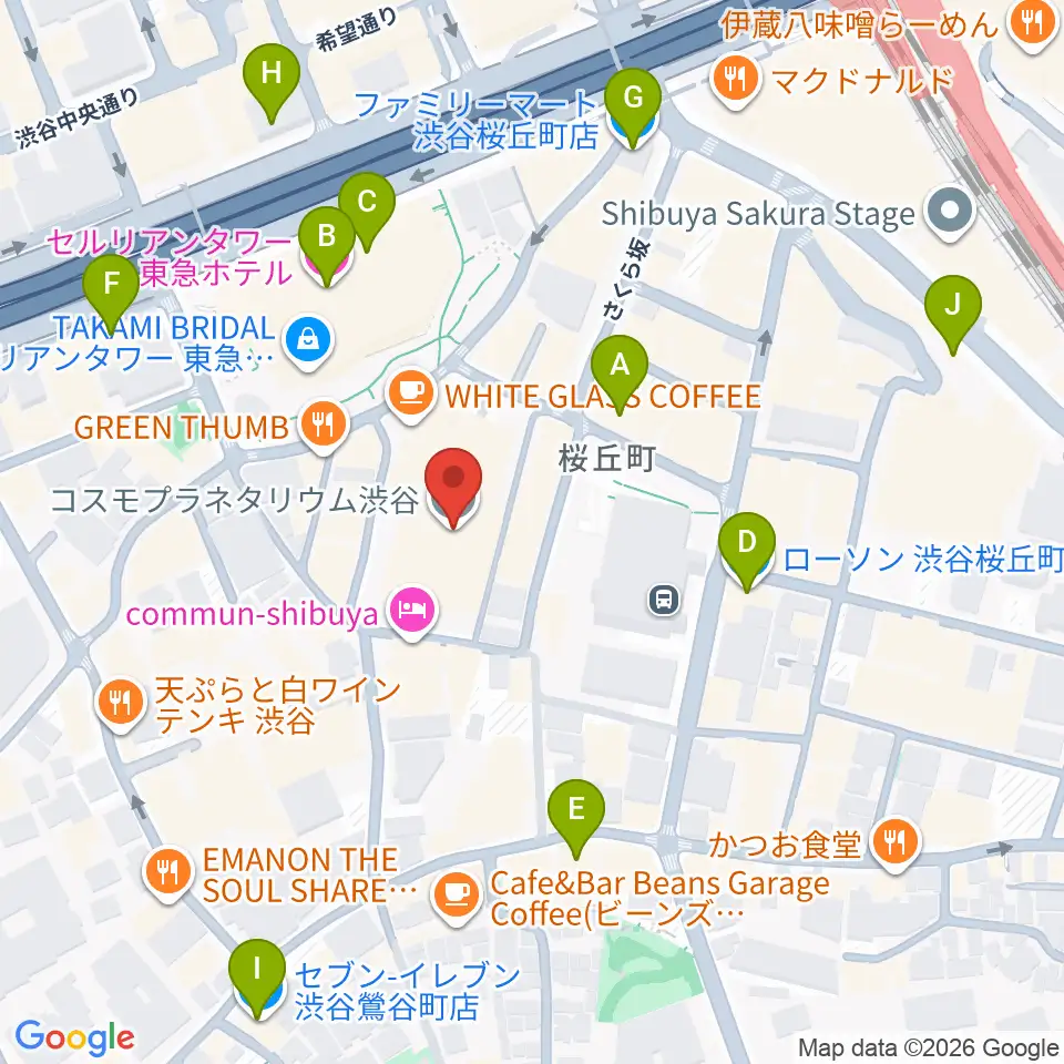 コスモプラネタリウム渋谷周辺のコンビニエンスストア一覧地図