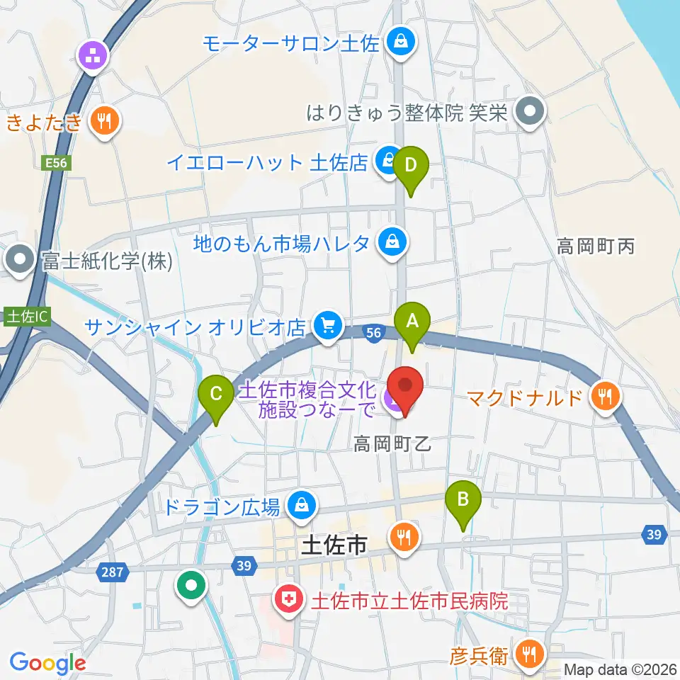 土佐市複合文化施設つなーで周辺のコンビニエンスストア一覧地図