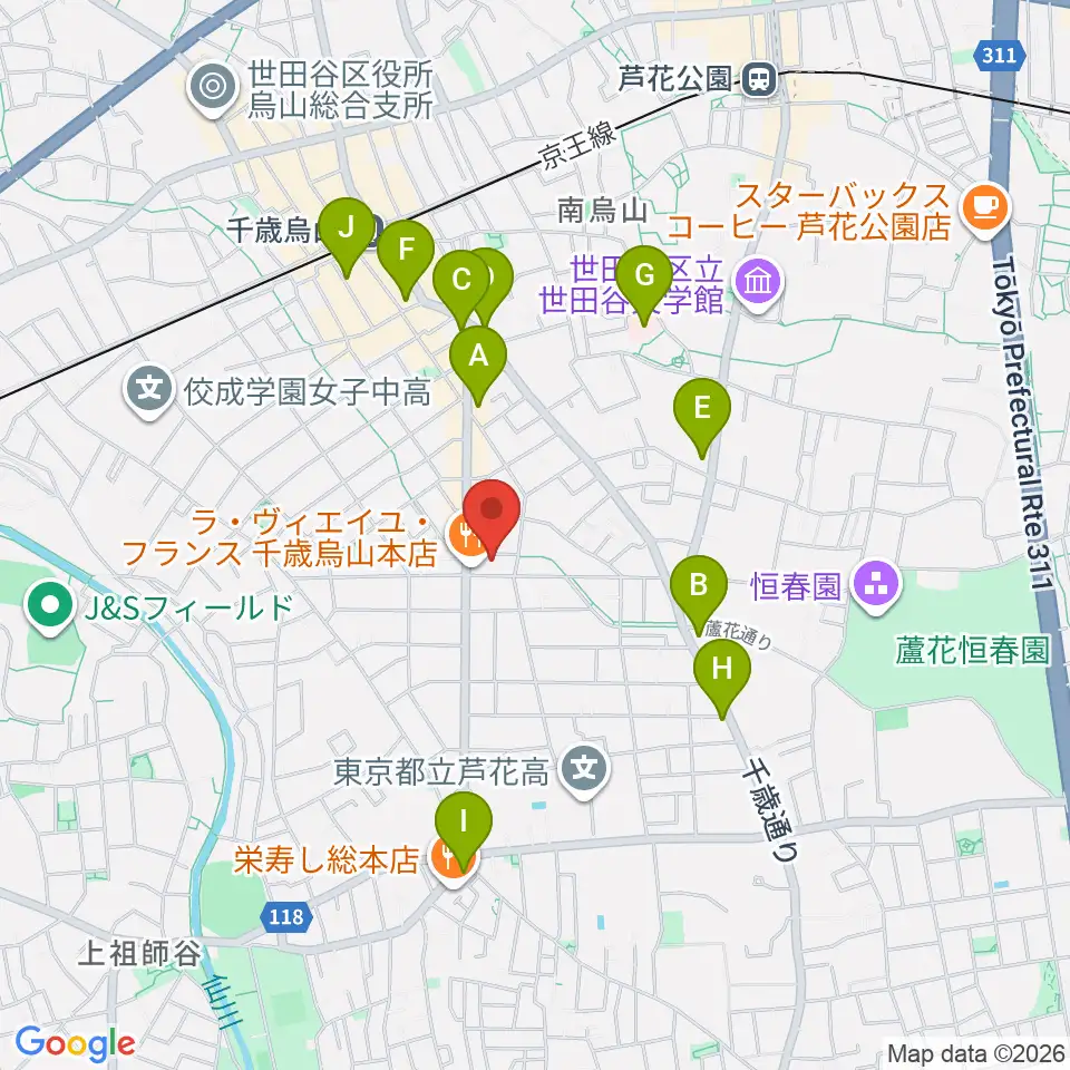 ユリミュージックキャンパス千歳鳥山教室周辺のコンビニエンスストア一覧地図