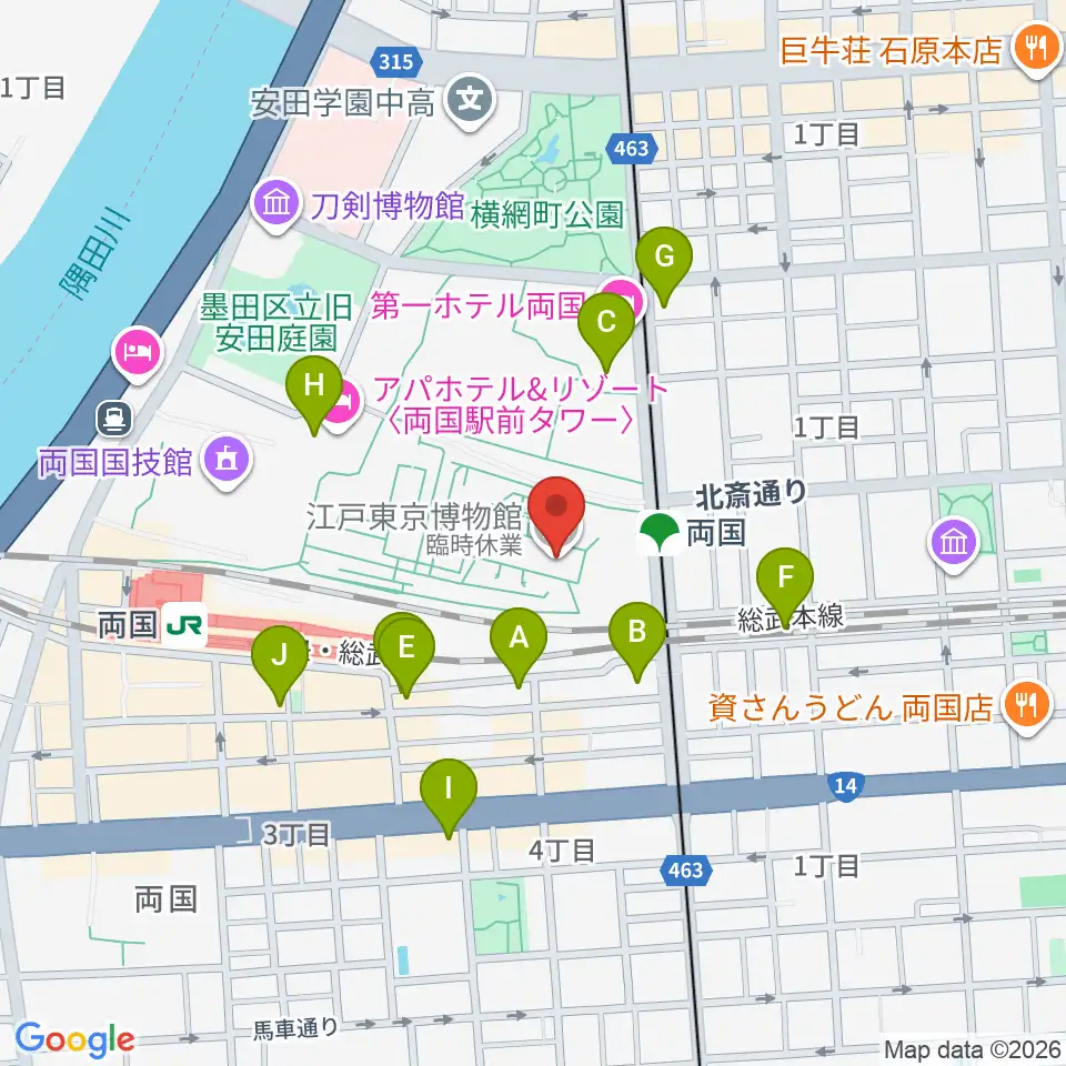江戸東京博物館周辺のコンビニエンスストア一覧地図