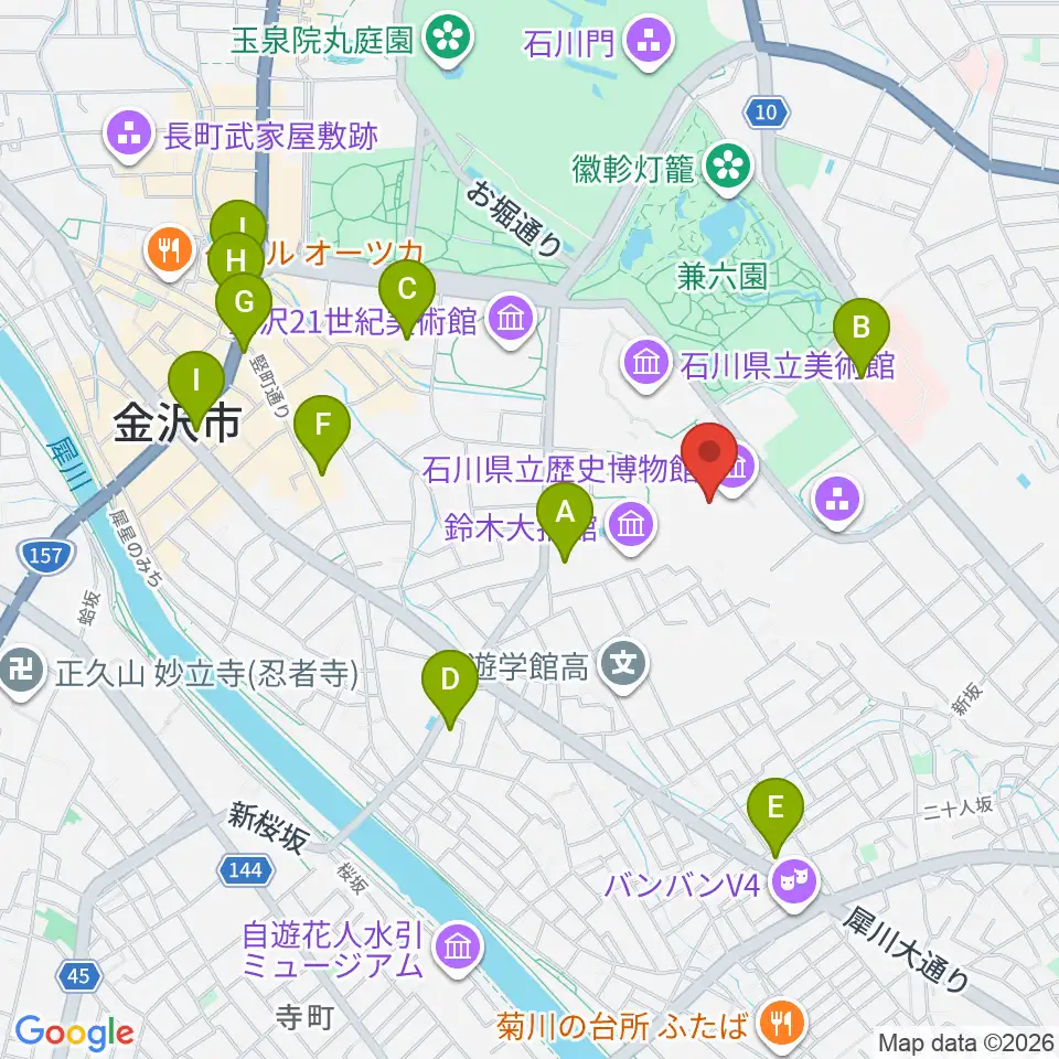 石川県立歴史博物館 いしかわ赤レンガミュージアム周辺のコンビニエンスストア一覧地図