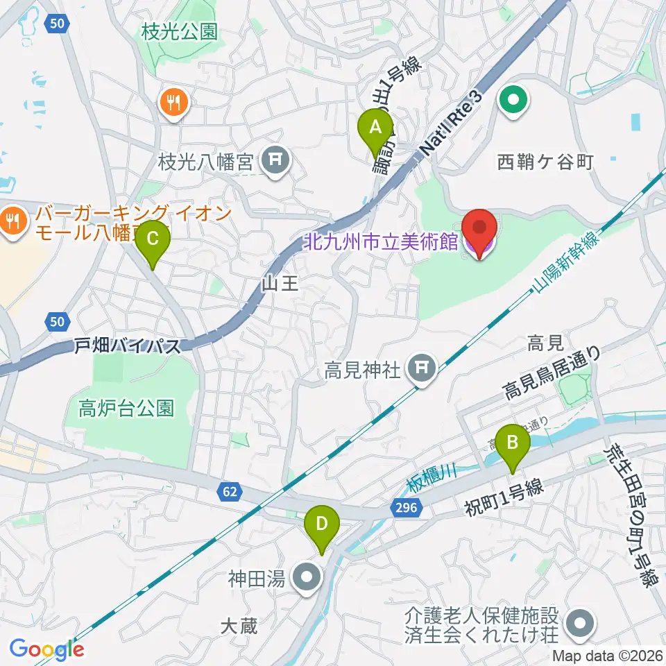 北九州市立美術館周辺のコンビニエンスストア一覧地図