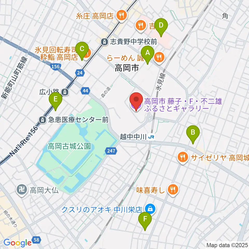 高岡市美術館周辺のコンビニエンスストア一覧地図