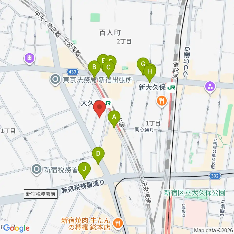 ON AIR 大久保スタジオ周辺のコンビニエンスストア一覧地図