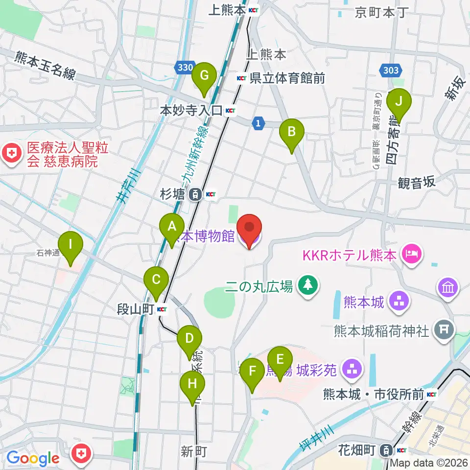 熊本博物館周辺のコンビニエンスストア一覧地図