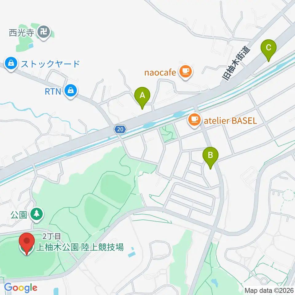 上柚木公園陸上競技場周辺のコンビニエンスストア一覧地図