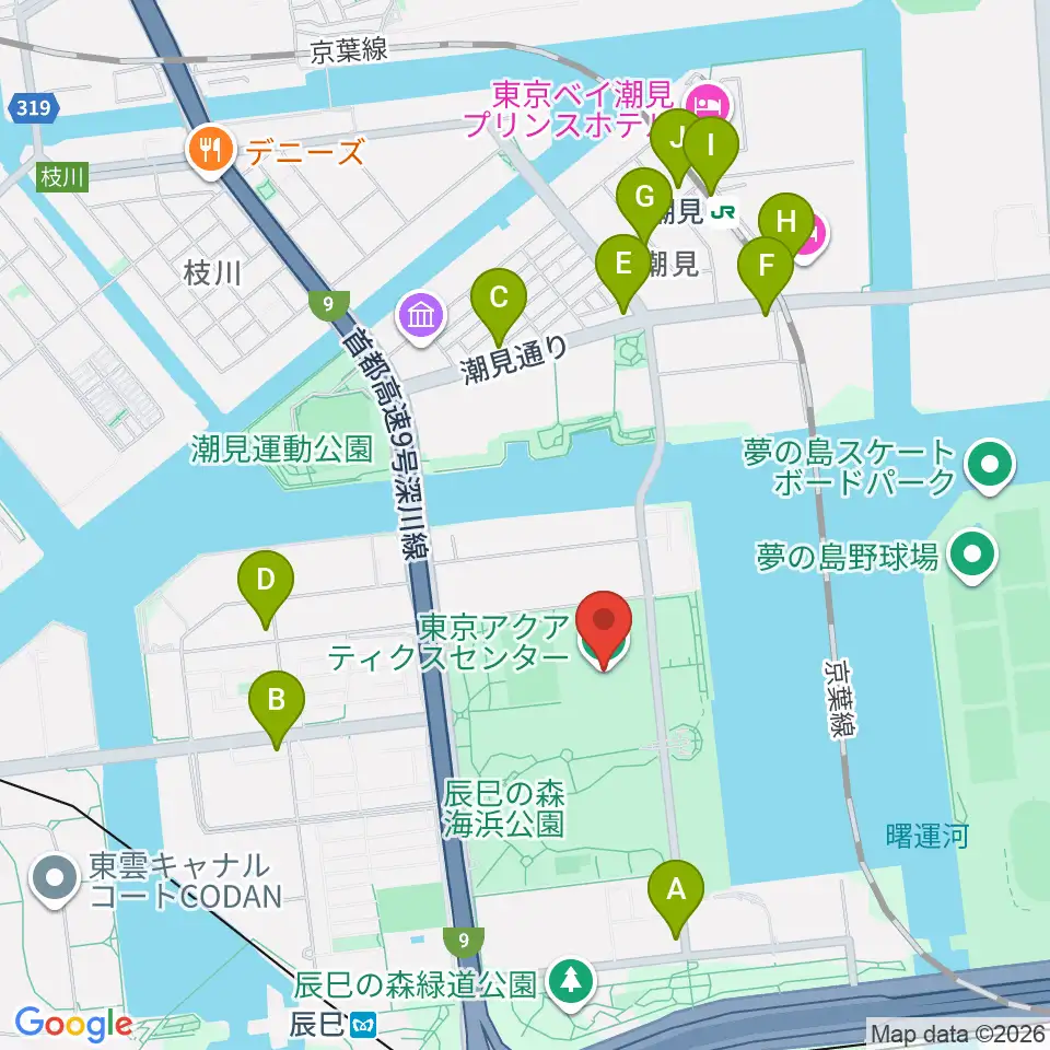 東京アクアティクスセンター周辺のコンビニエンスストア一覧地図