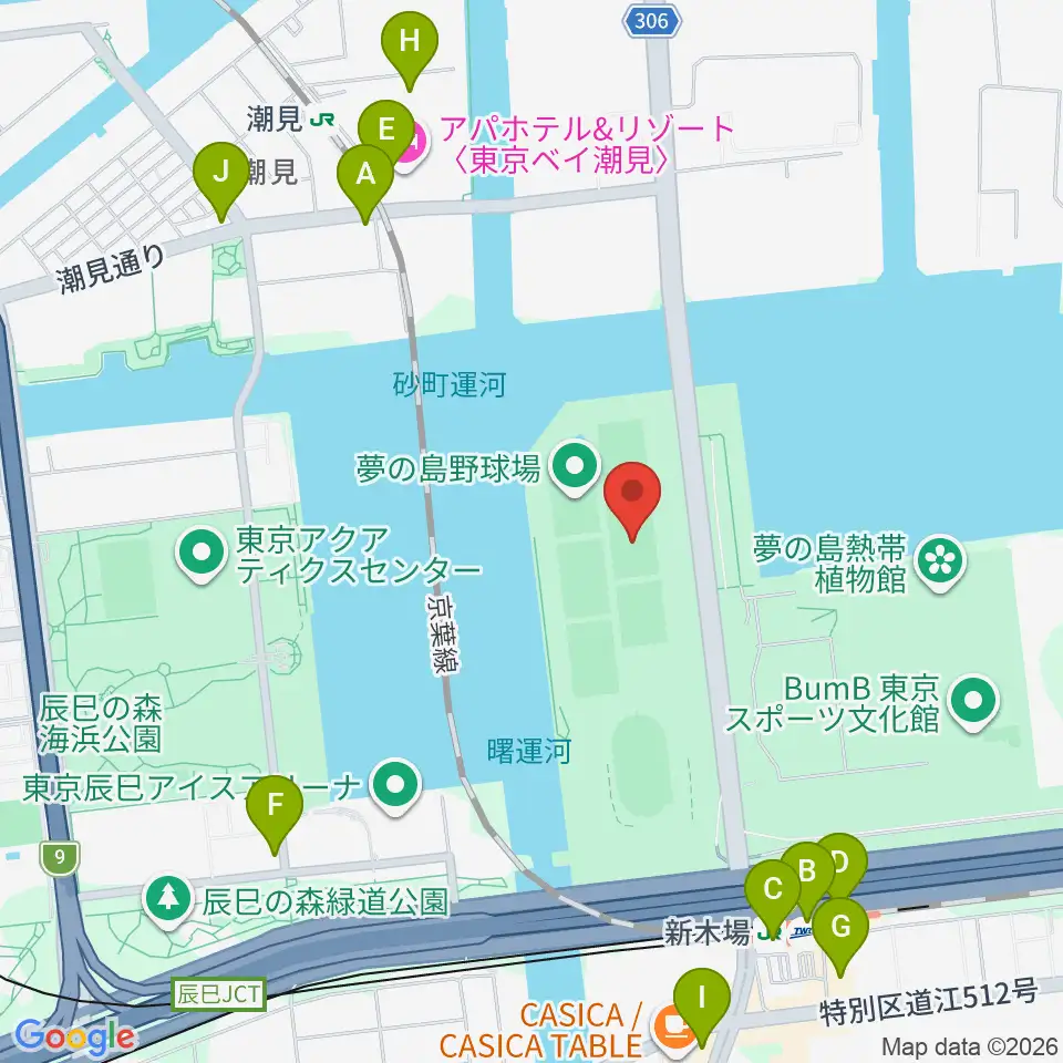夢の島野球場周辺のコンビニエンスストア一覧地図