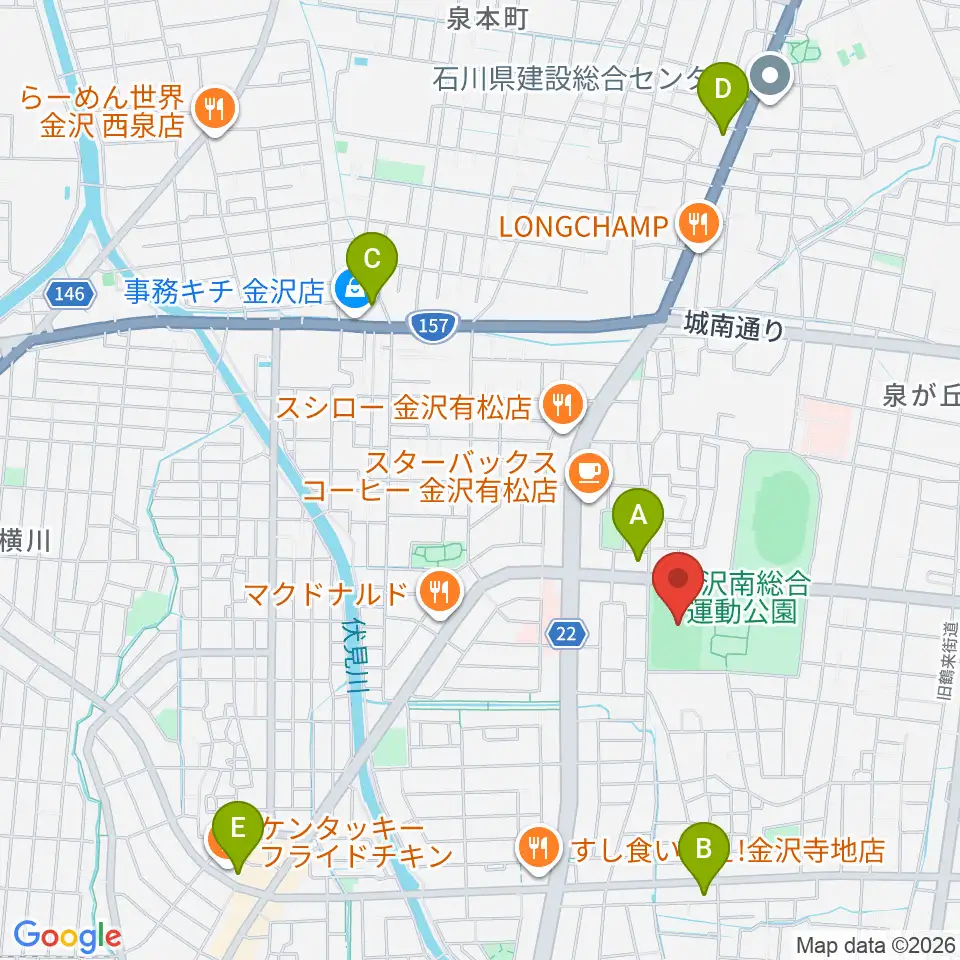 金沢市営球技場周辺のコンビニエンスストア一覧地図