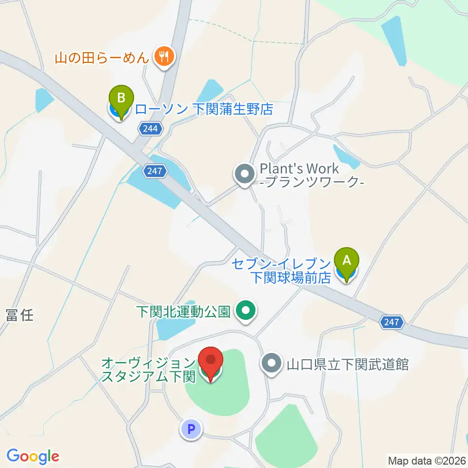 オーヴィジョンスタジアム下関周辺のコンビニエンスストア一覧地図