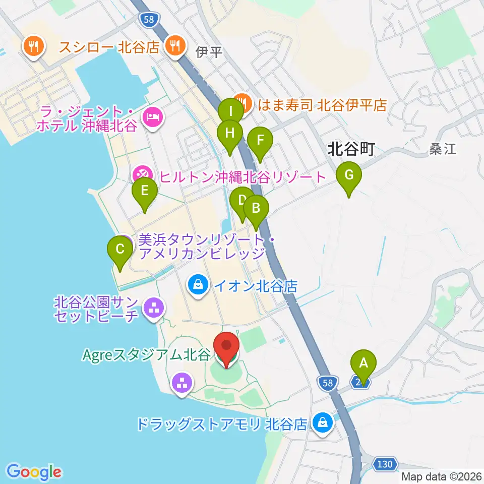 Agreスタジアム北谷周辺のコンビニエンスストア一覧地図