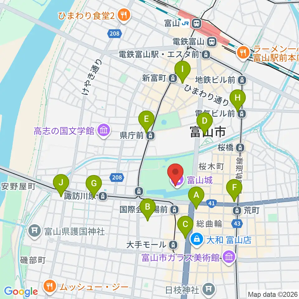 富山市郷土博物館周辺のコンビニエンスストア一覧地図