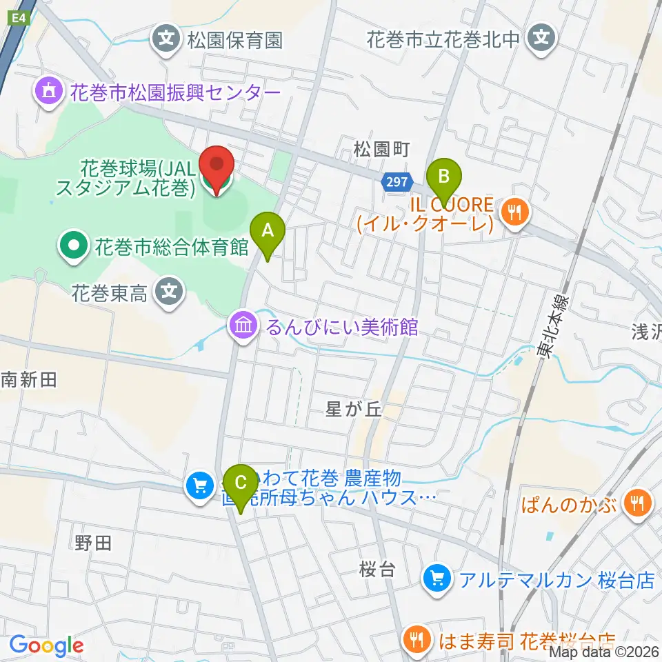 JALスタジアム花巻周辺のコンビニエンスストア一覧地図