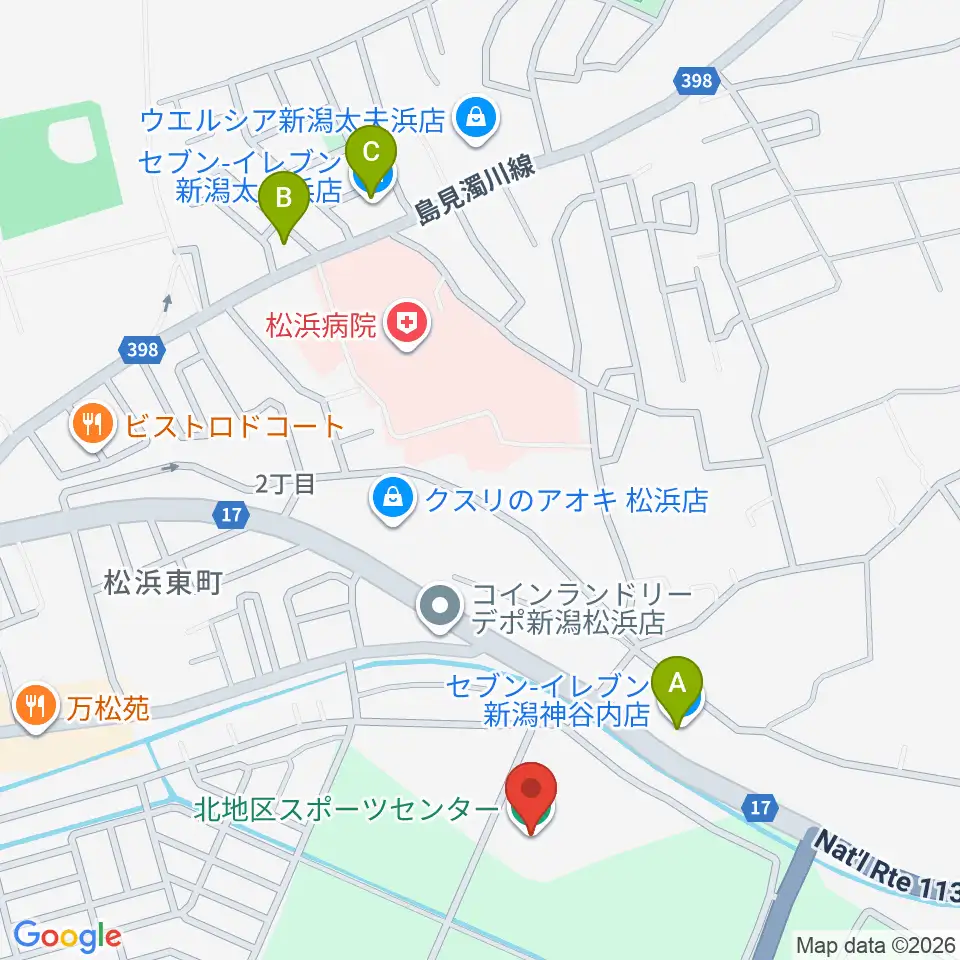 新潟市北地区スポーツセンター周辺のコンビニエンスストア一覧地図