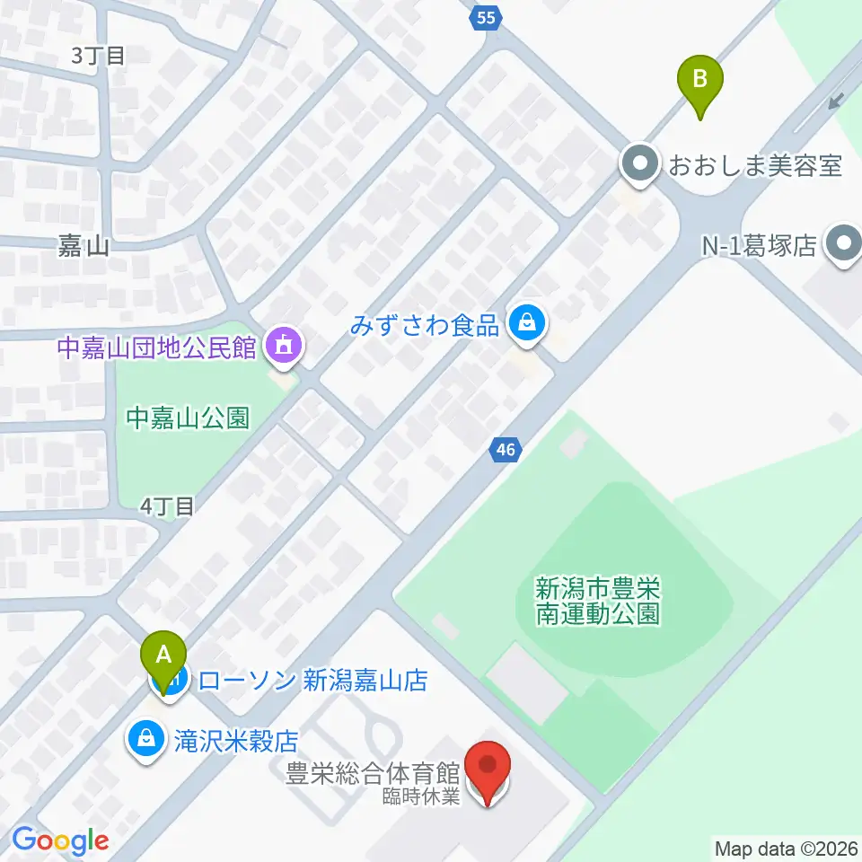 新潟市豊栄総合体育館周辺のコンビニエンスストア一覧地図