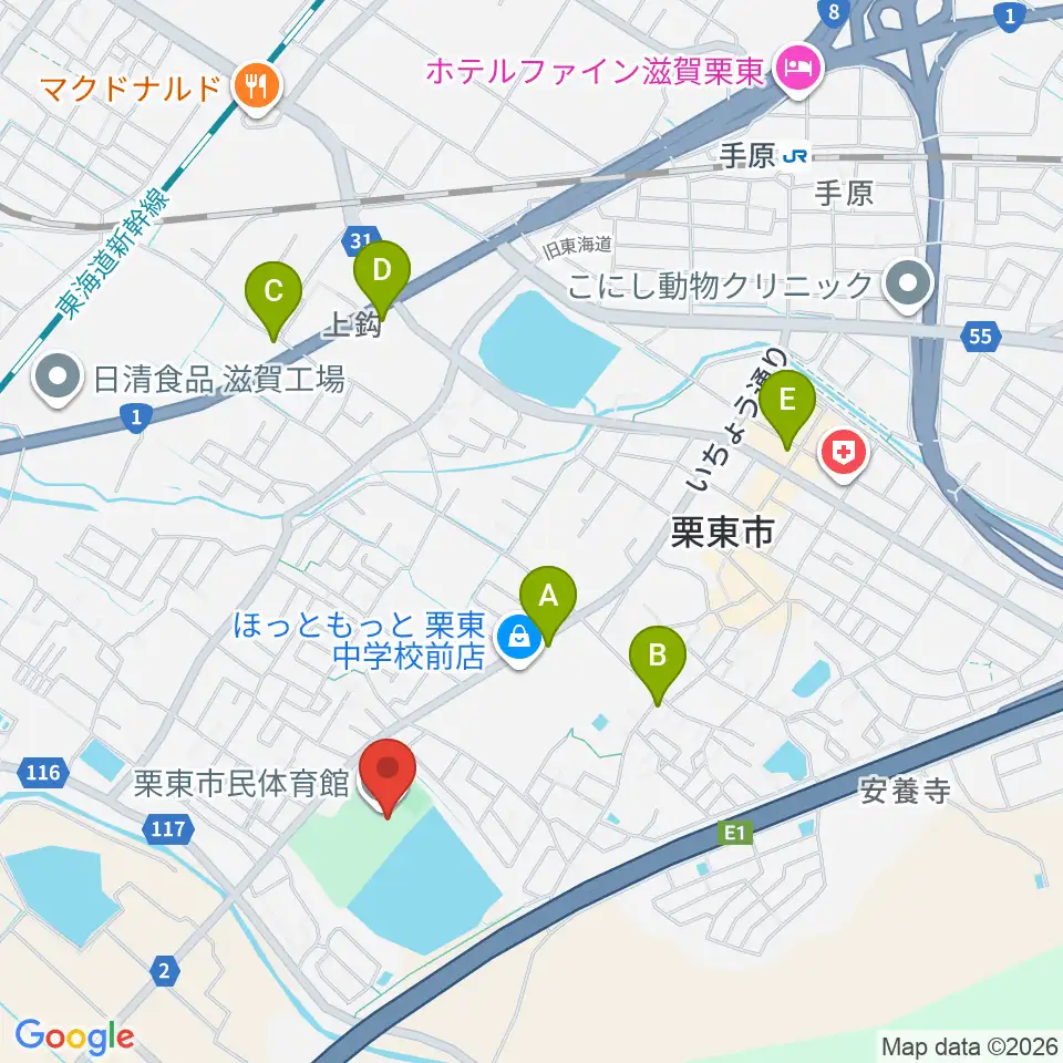 栗東市民体育館周辺のコンビニエンスストア一覧地図
