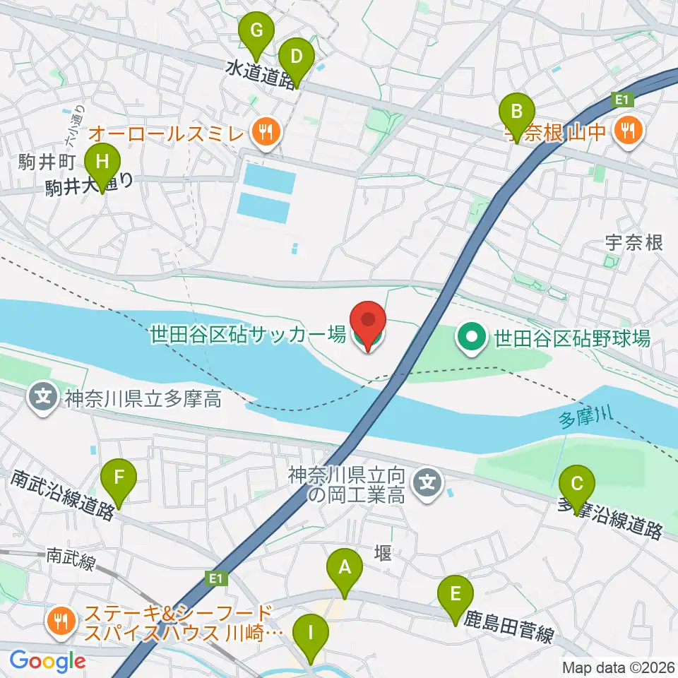 目黒区砧サッカー場周辺のコンビニエンスストア一覧地図