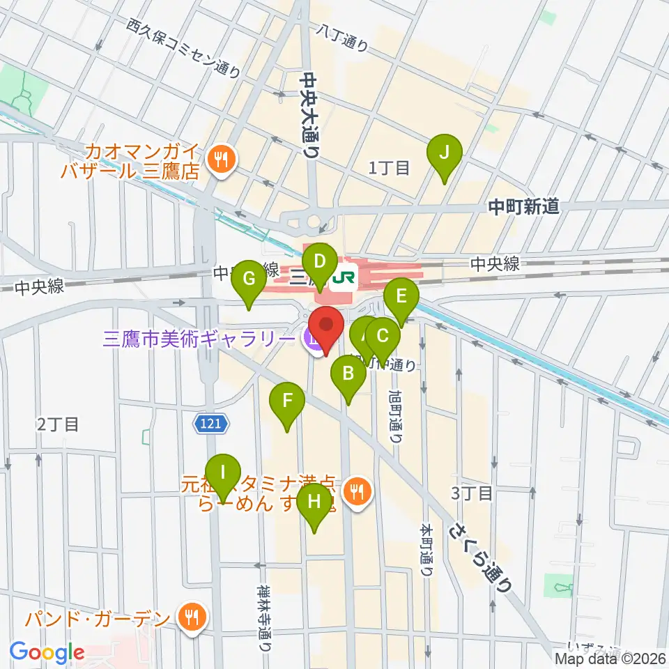 三鷹市美術ギャラリー周辺のコンビニエンスストア一覧地図
