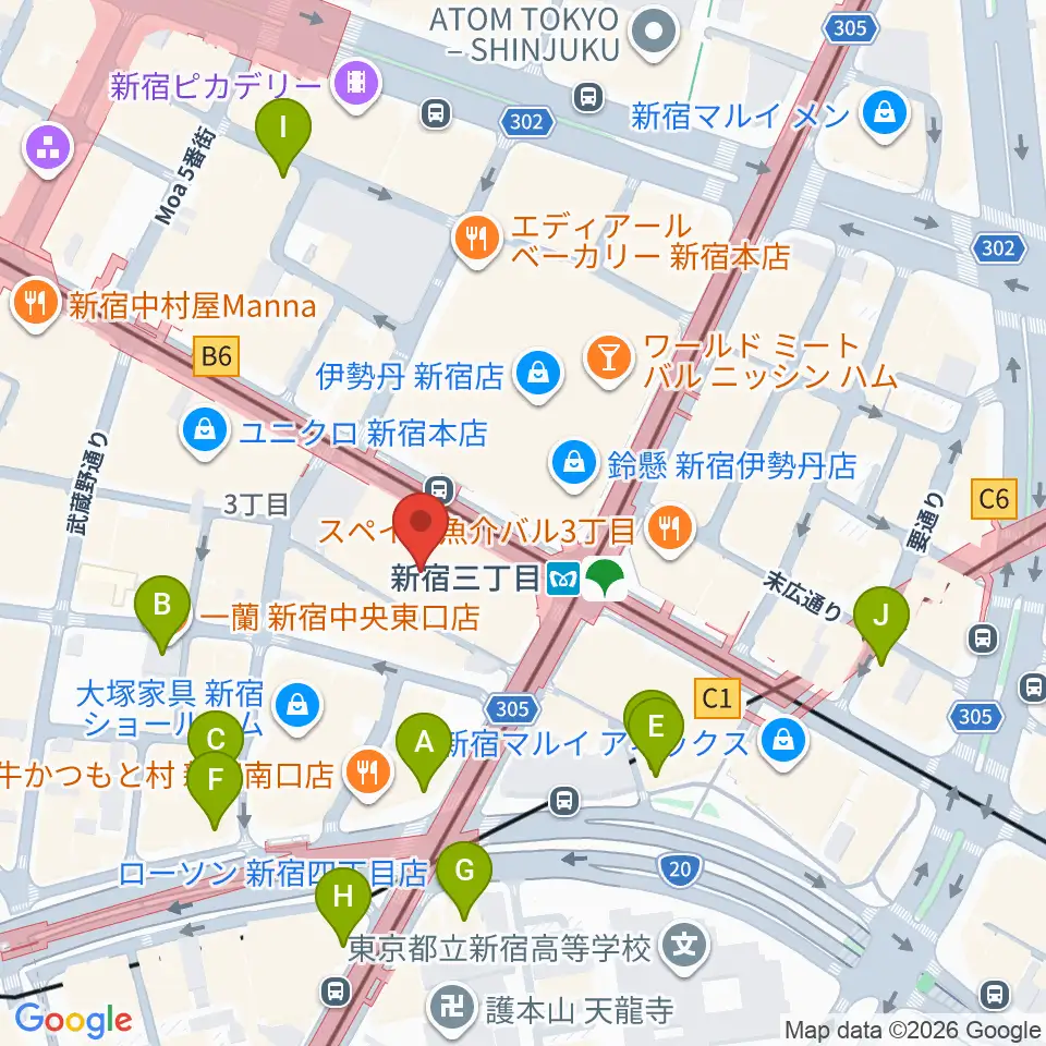 シアターマーキュリー新宿周辺のコンビニエンスストア一覧地図