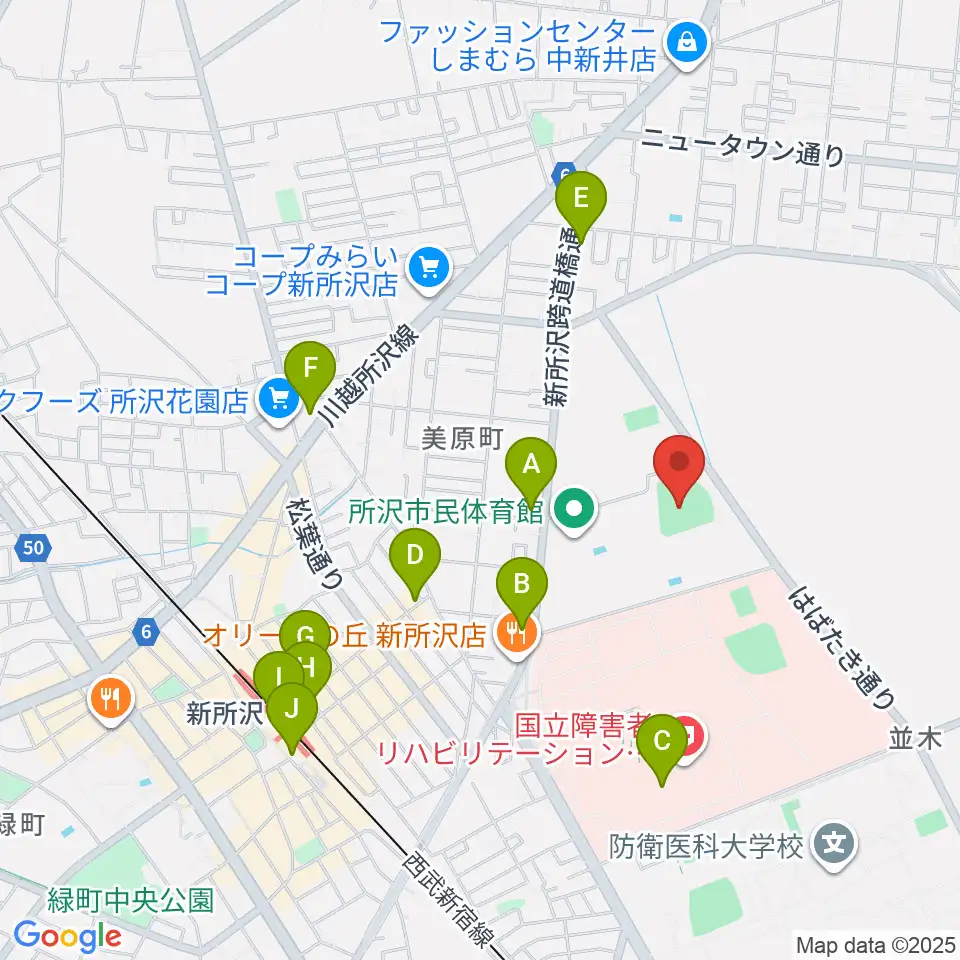 所沢市総合運動場野球場周辺のコンビニエンスストア一覧地図
