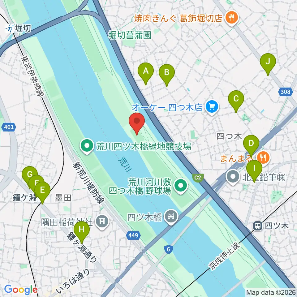 四つ木橋球技場周辺のコンビニエンスストア一覧地図