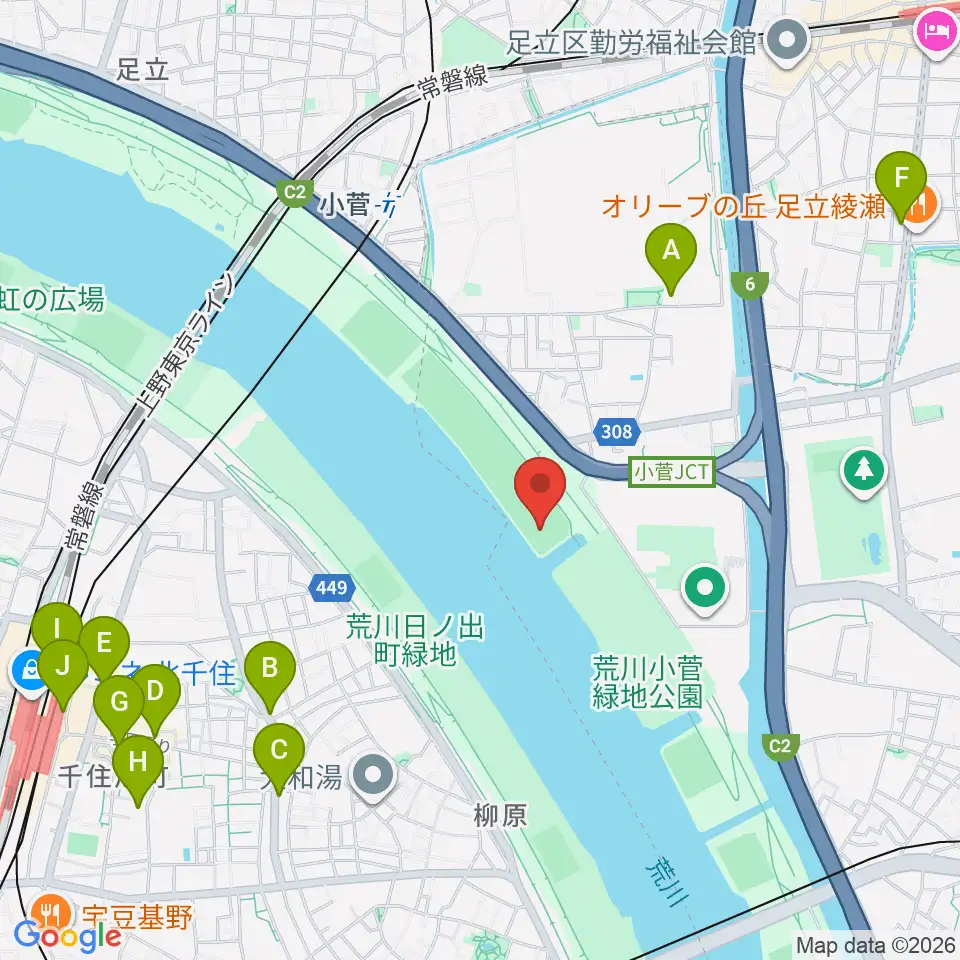 荒川小菅野球場周辺のコンビニエンスストア一覧地図