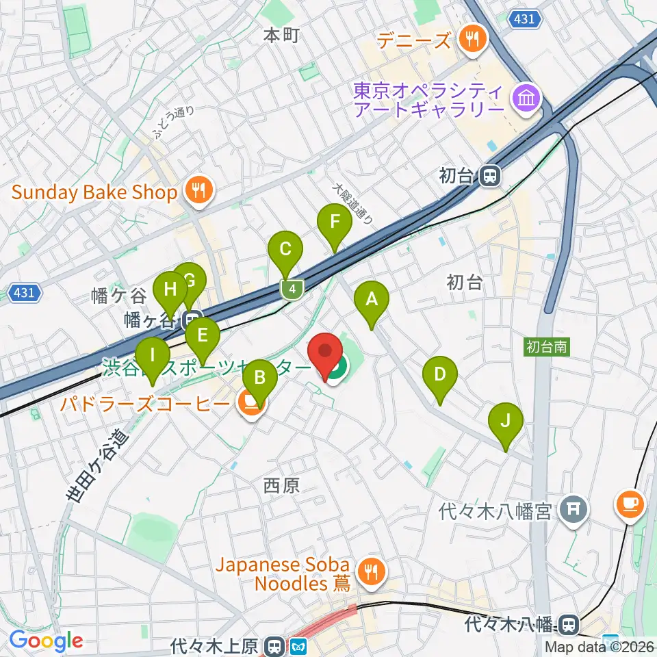 渋谷区スポーツセンター運動場周辺のコンビニエンスストア一覧地図