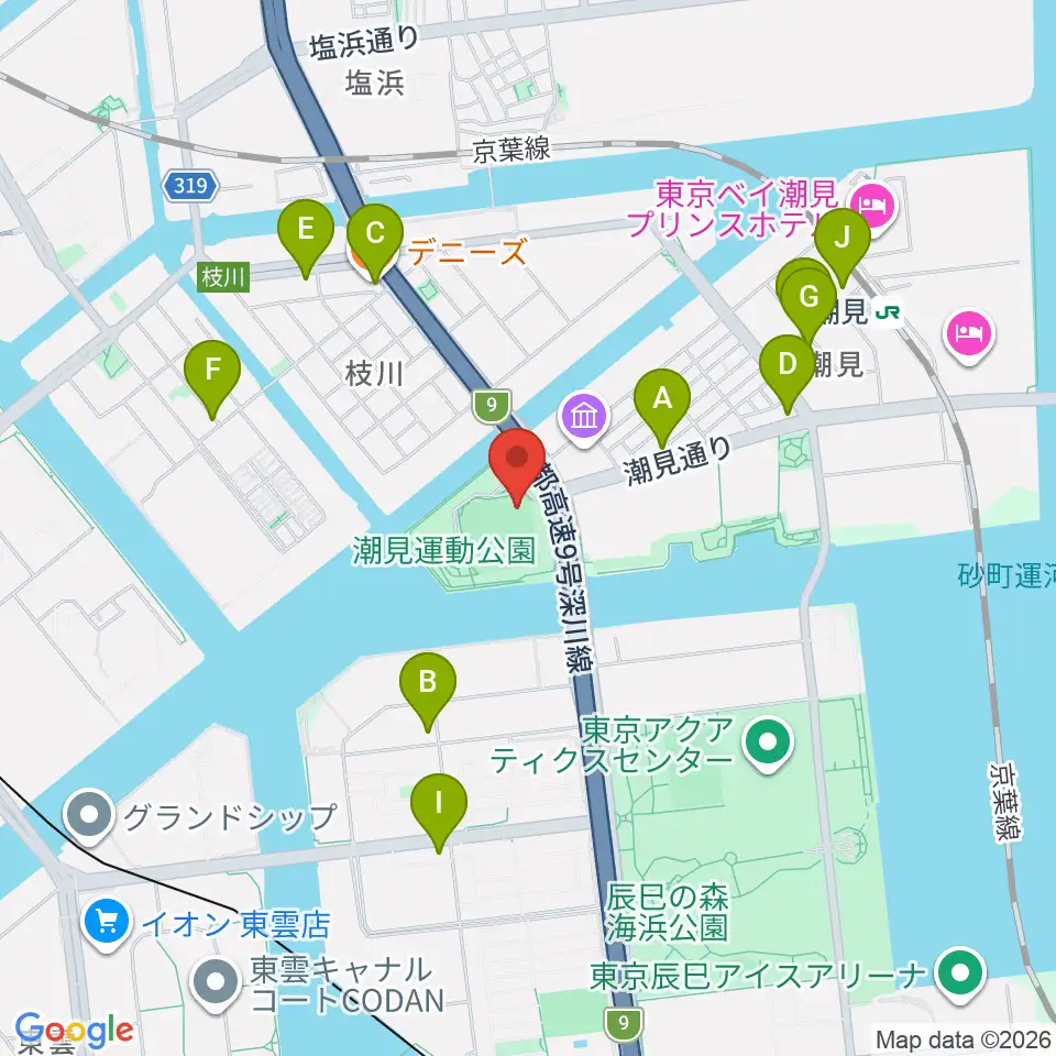 潮見野球場周辺のコンビニエンスストア一覧地図