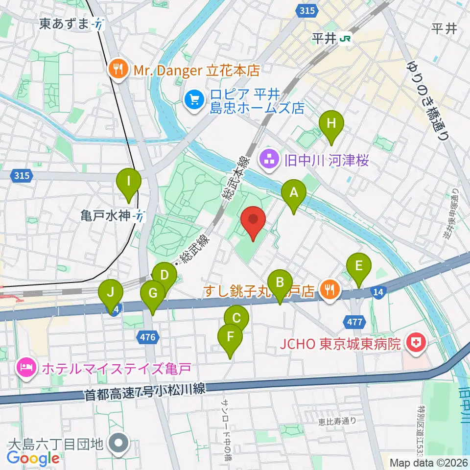 亀戸運動公園少年野球場周辺のコンビニエンスストア一覧地図