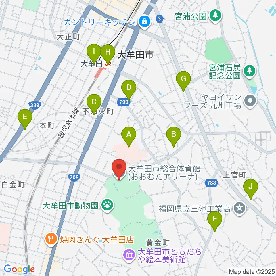 おおむたアリーナ周辺のコンビニエンスストア一覧地図