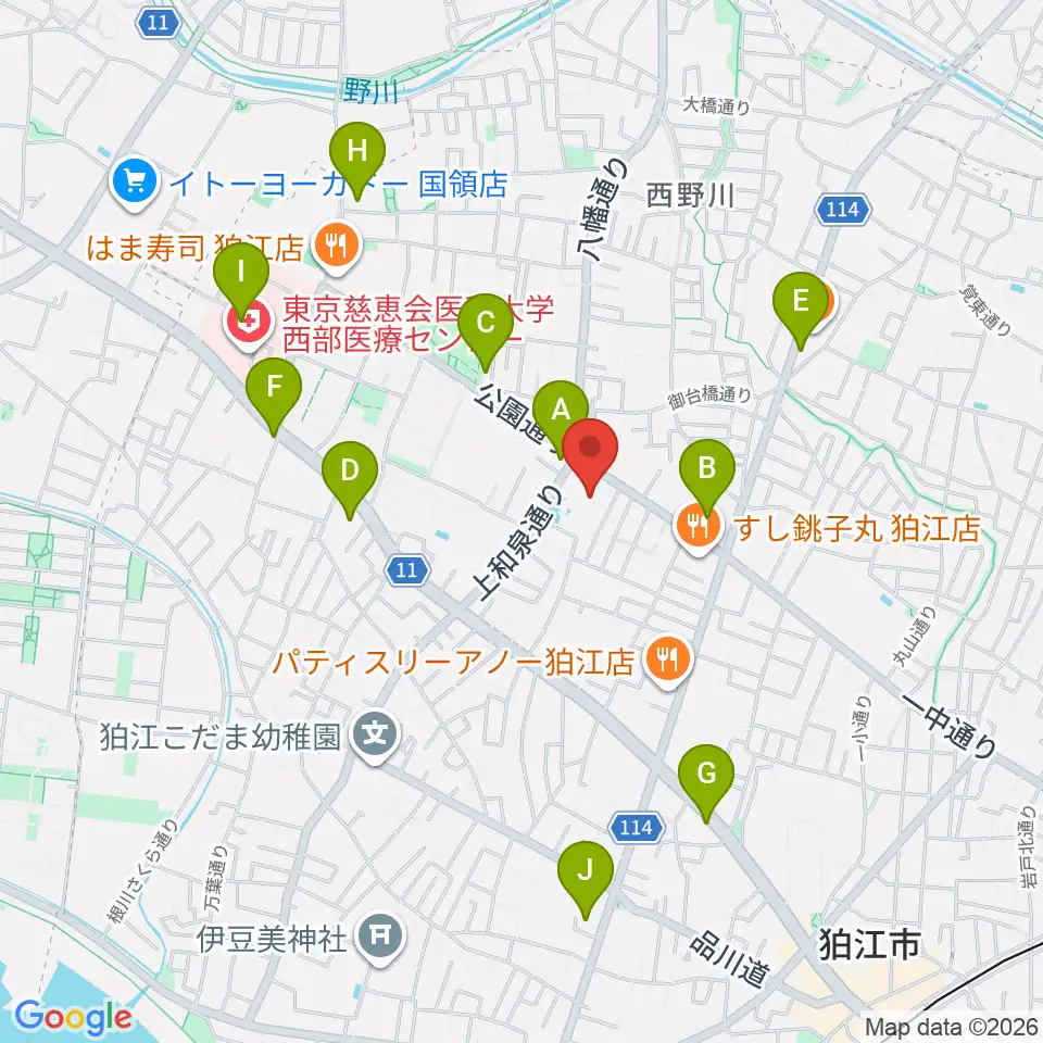 狛江市民総合体育館周辺のコンビニエンスストア一覧地図
