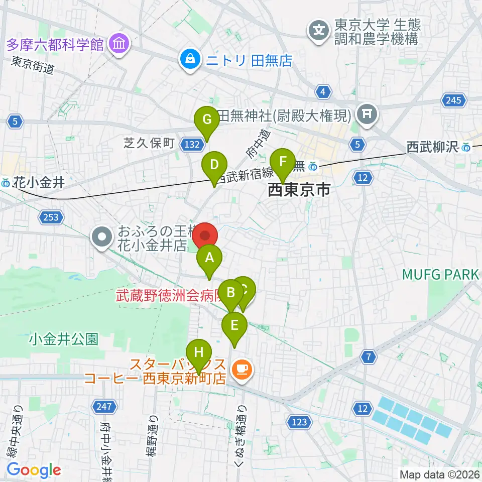 西東京市市民公園グラウンド周辺のコンビニエンスストア一覧地図
