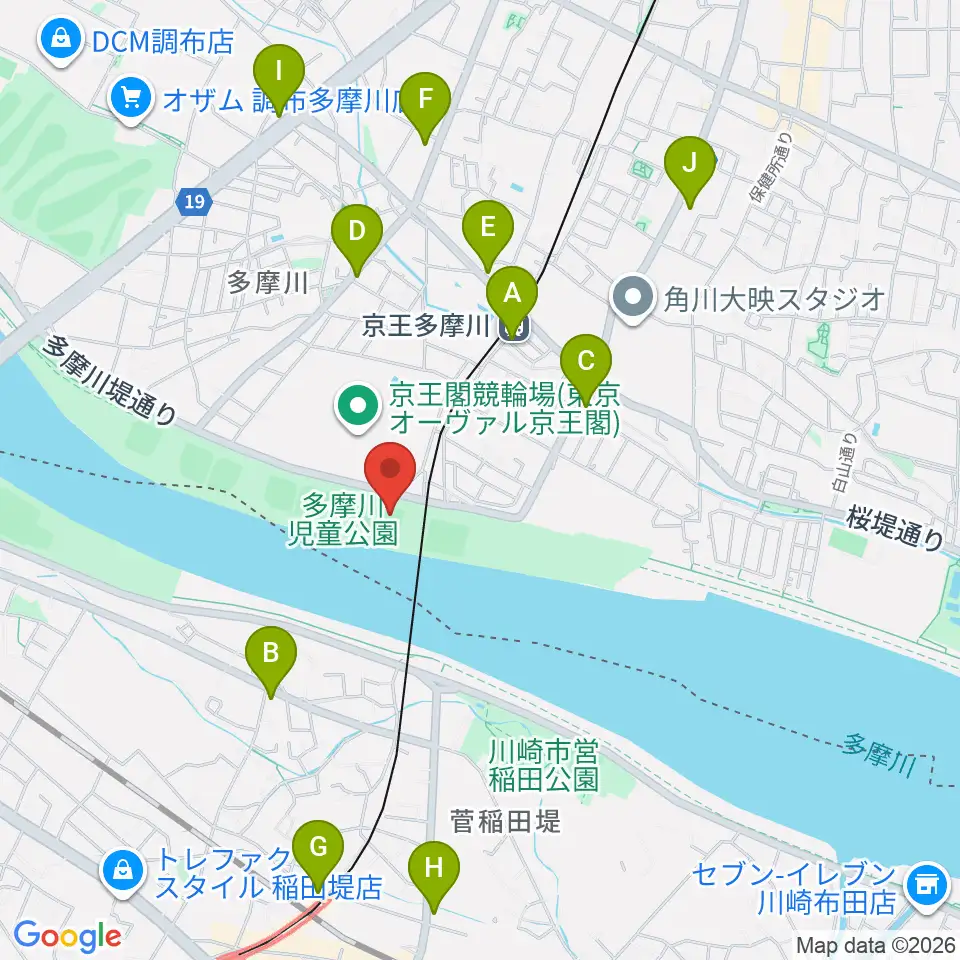 多摩川児童公園ソフトボール場周辺のコンビニエンスストア一覧地図