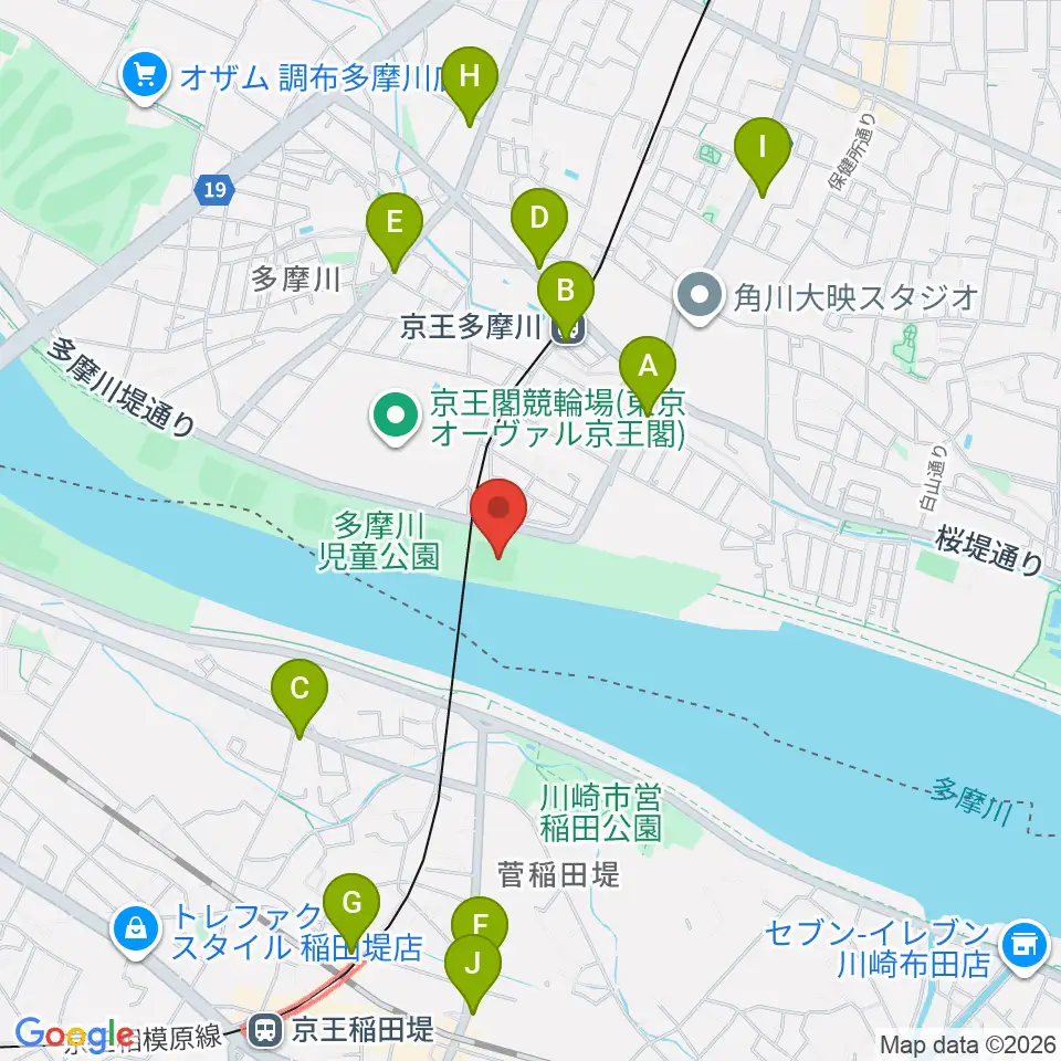 多摩川児童公園サッカー場周辺のコンビニエンスストア一覧地図