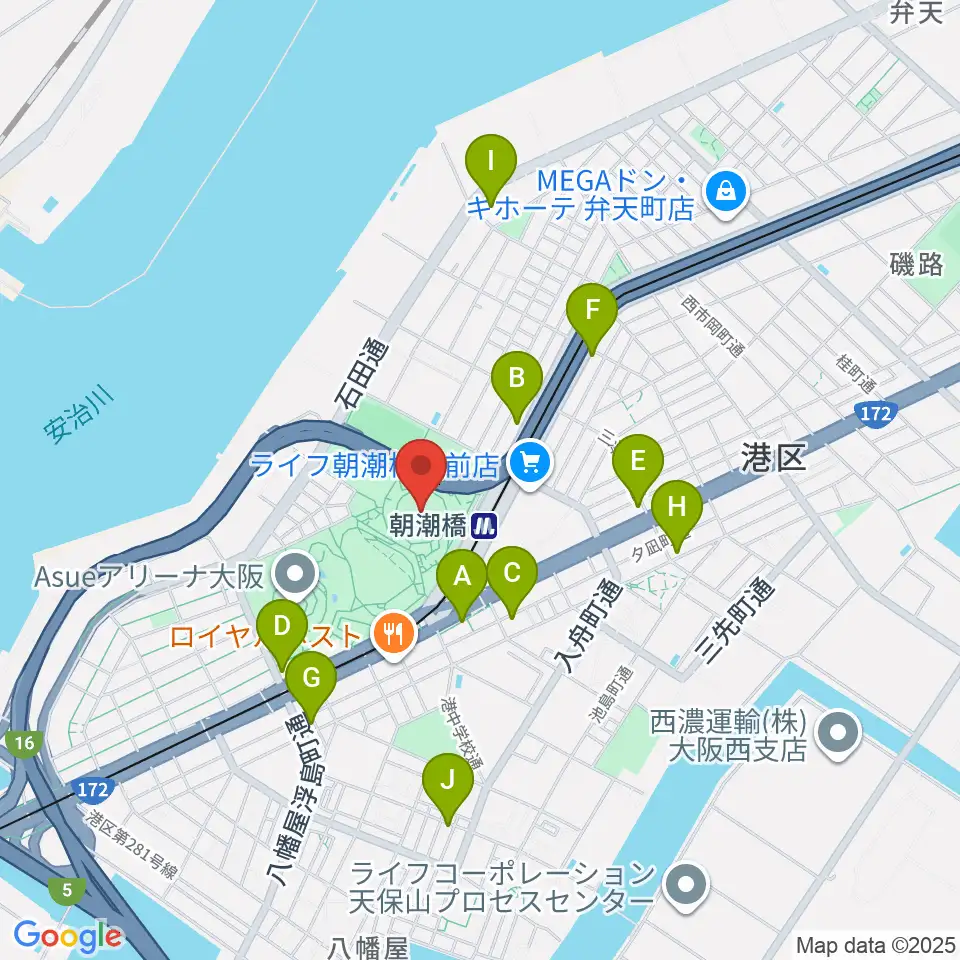 Asue大阪プール周辺のコンビニエンスストア一覧地図