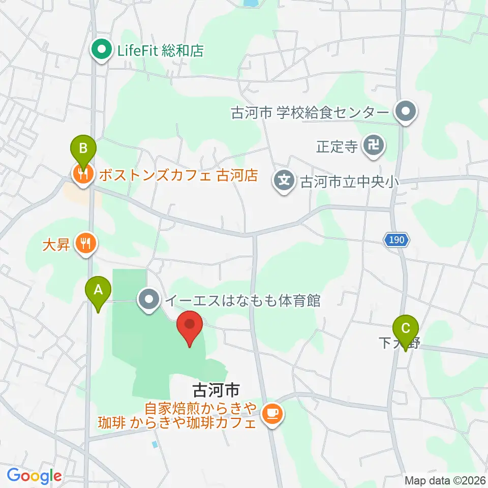 古河市イーエス中央運動公園陸上競技場周辺のコンビニエンスストア一覧地図