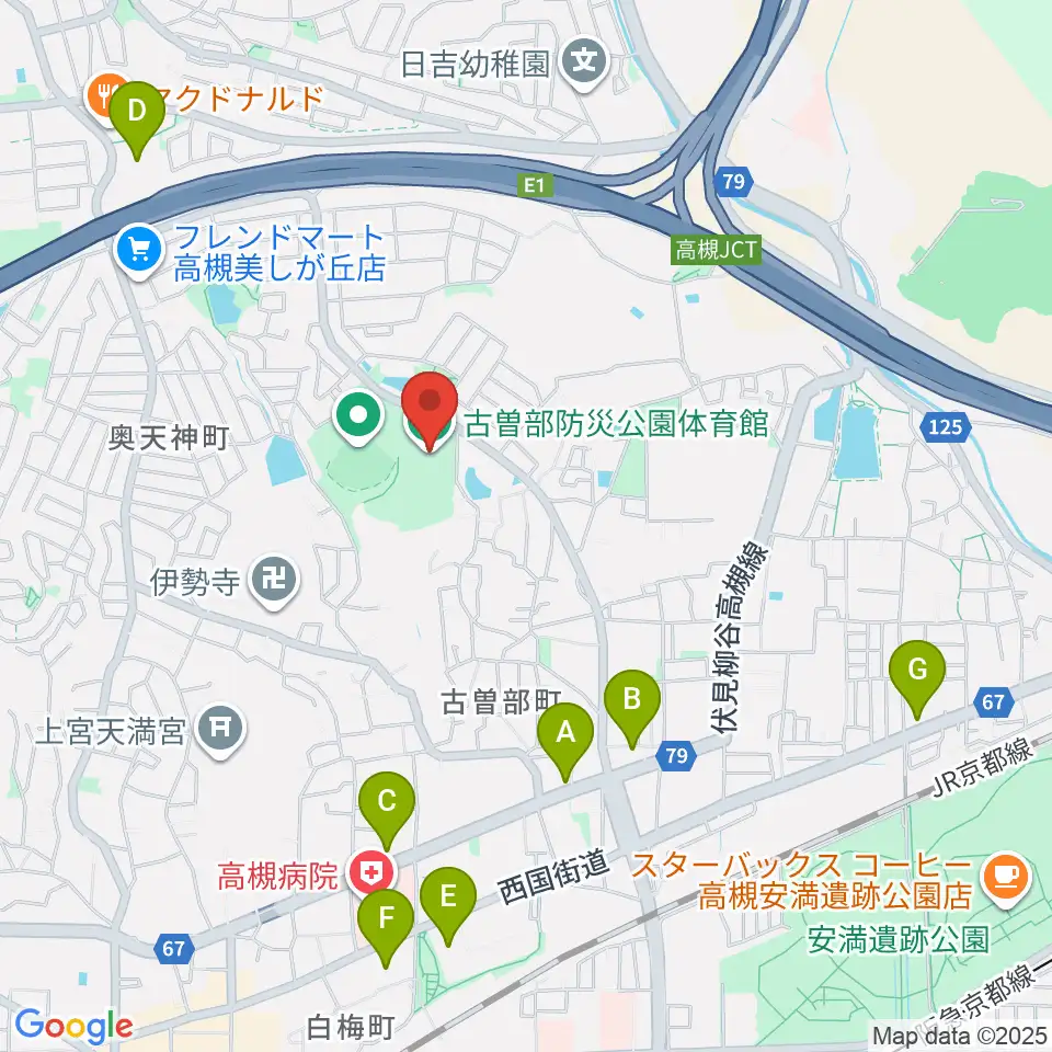 古曽部防災公園体育館周辺のコンビニエンスストア一覧地図