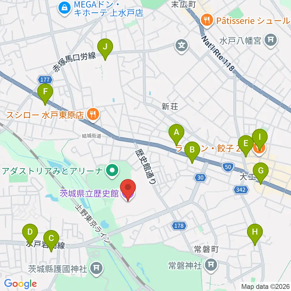 茨城県立歴史館周辺のコンビニエンスストア一覧地図