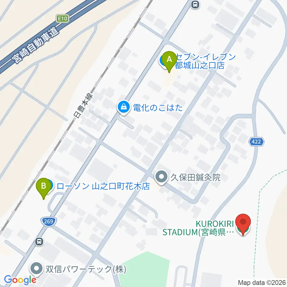 クロキリスタジアム周辺のコンビニエンスストア一覧地図